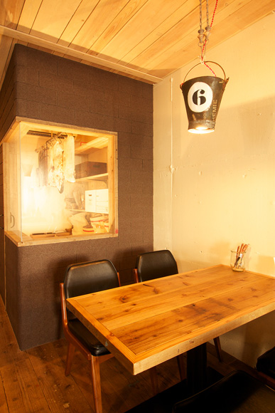 内装はオーナー夫婦との打ち合わせの中で新し過ぎないよう配慮し、中古材料を適材適所で使用した。また、お肉の熟成具合もオブジェとして見せるような部屋、ジェラート用のブースなど店舗内に複数のお店が共存しているようなデザインを目指した。