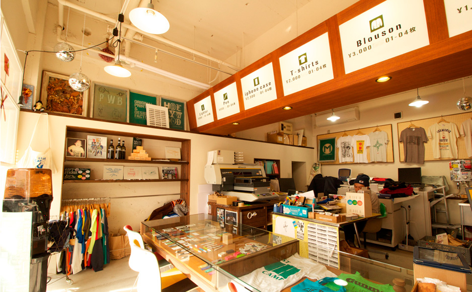 街の印刷屋というコンセプトから気軽に入れるようなデザイン、また製作所でもあるのでファクトリーとしての要素も考慮してあまり作り込み過ぎずフレキシブルに対応できるように設計しました。